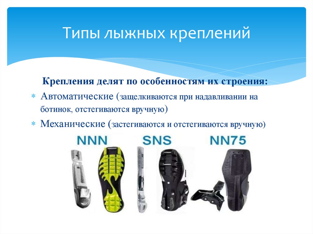 Типы лыжных крепленийКрепления делят по особенностям их строения: