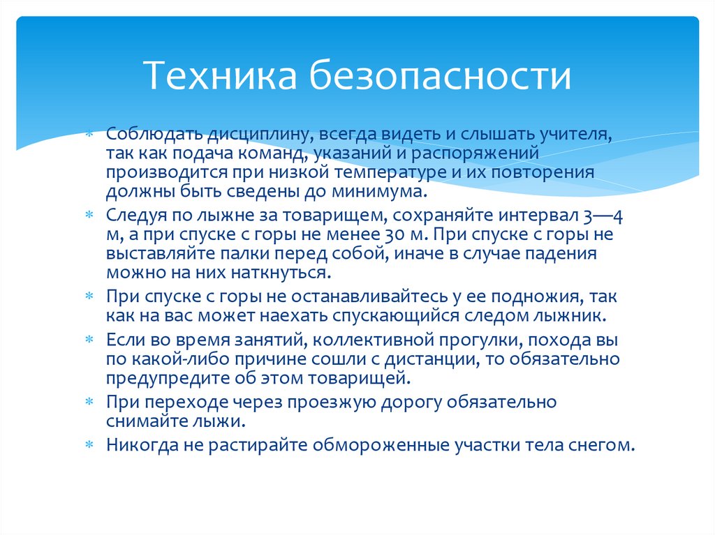 Техника безопасностиСоблюдать дисциплину, всегда видеть и слышать учителя,