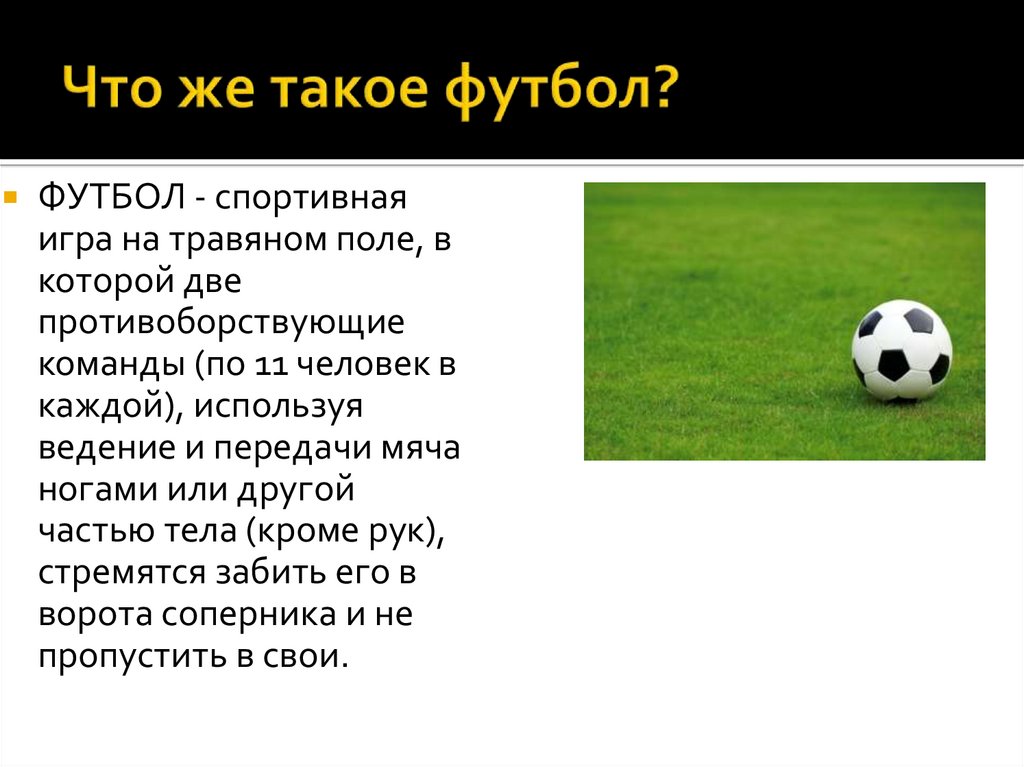 ФУТБОЛ - спортивнаяигра на травяном поле, в