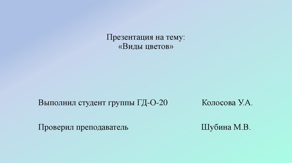 Презентация на тему:«Виды цветов»