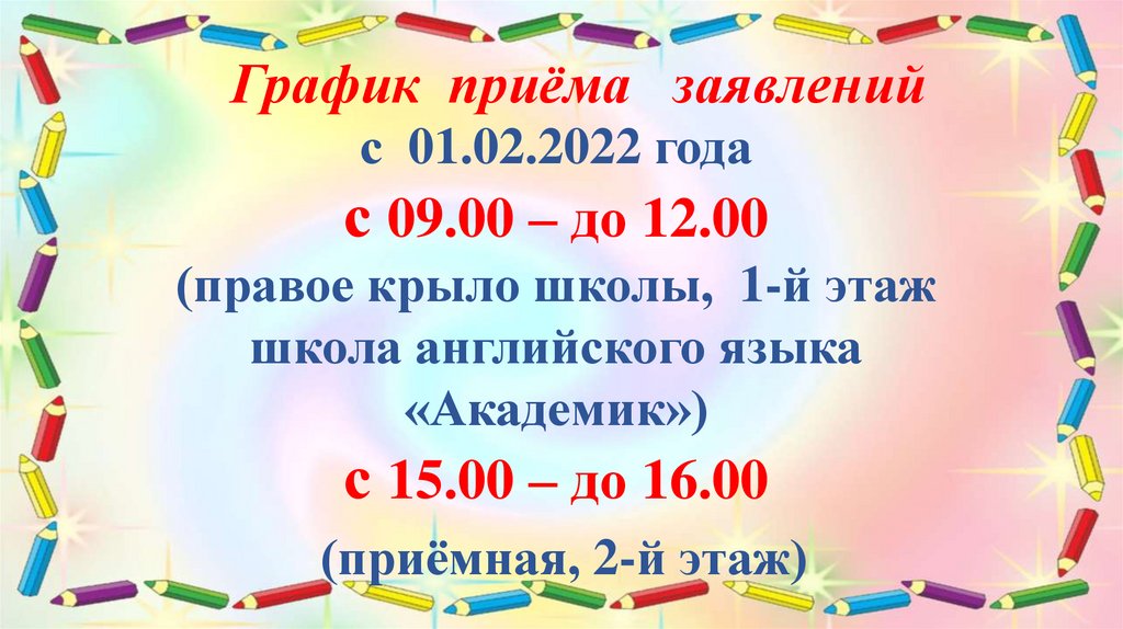 График приёма заявленийс 01.02.2022 года