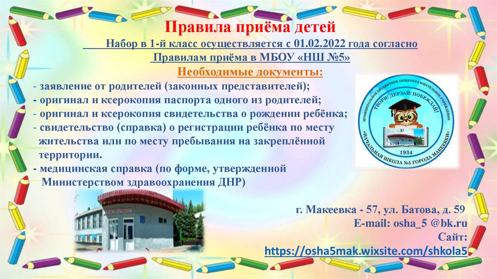 Правилам приёма в МБОУ «НШ №5»
