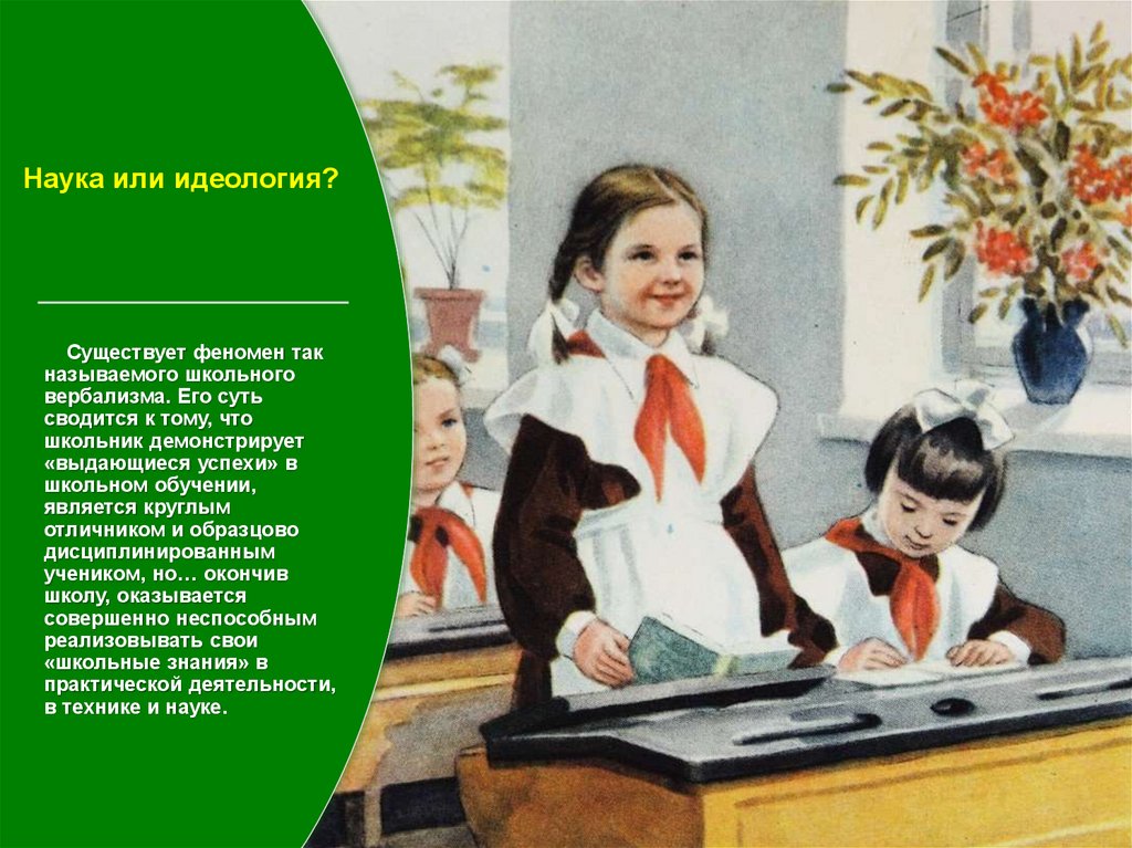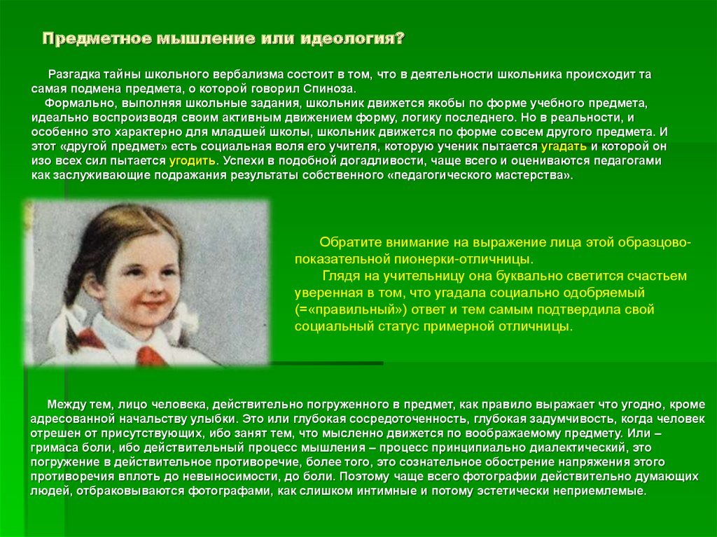 Предметное мышление или идеология?Разгадка тайны школьного вербализма состоит в том, что в деятельности школьника происходит та
