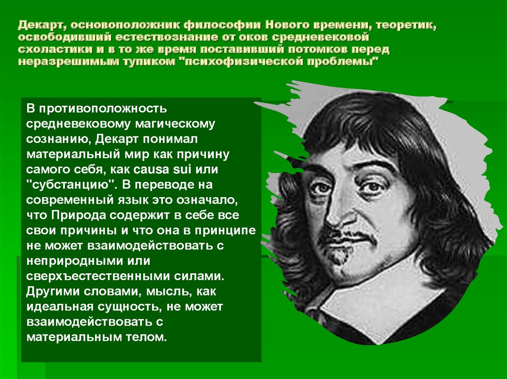 Декарт, основоположник философии Нового времени, теоретик,освободивший естествознание от оков средневековой