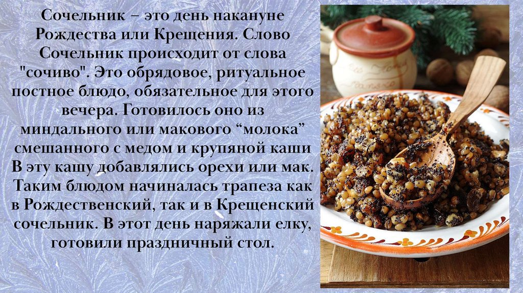 Сочельник – это день наканунеРождества или Крещения. Слово