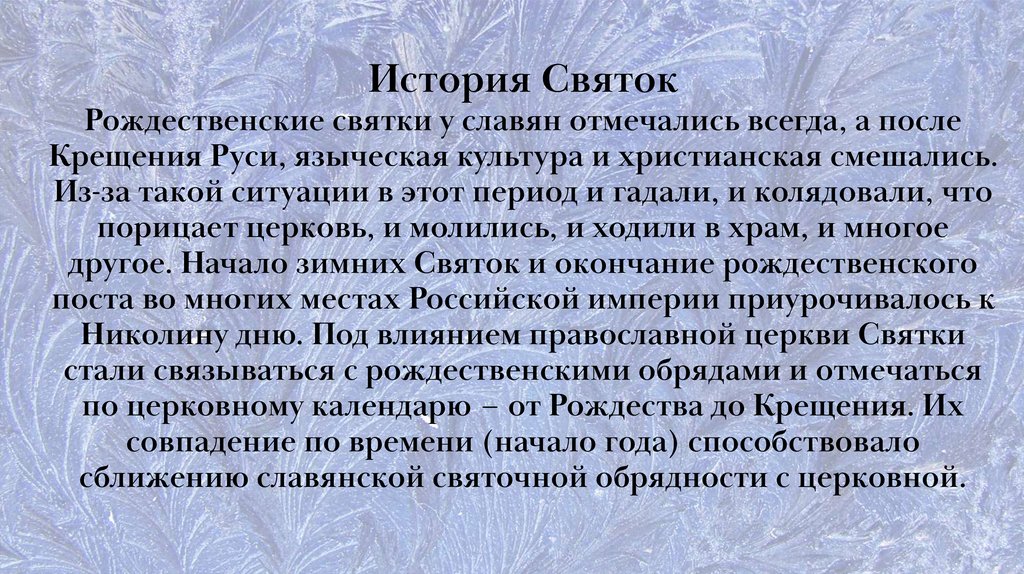 История СвятокРождественские святки у славян отмечались всегда, а после