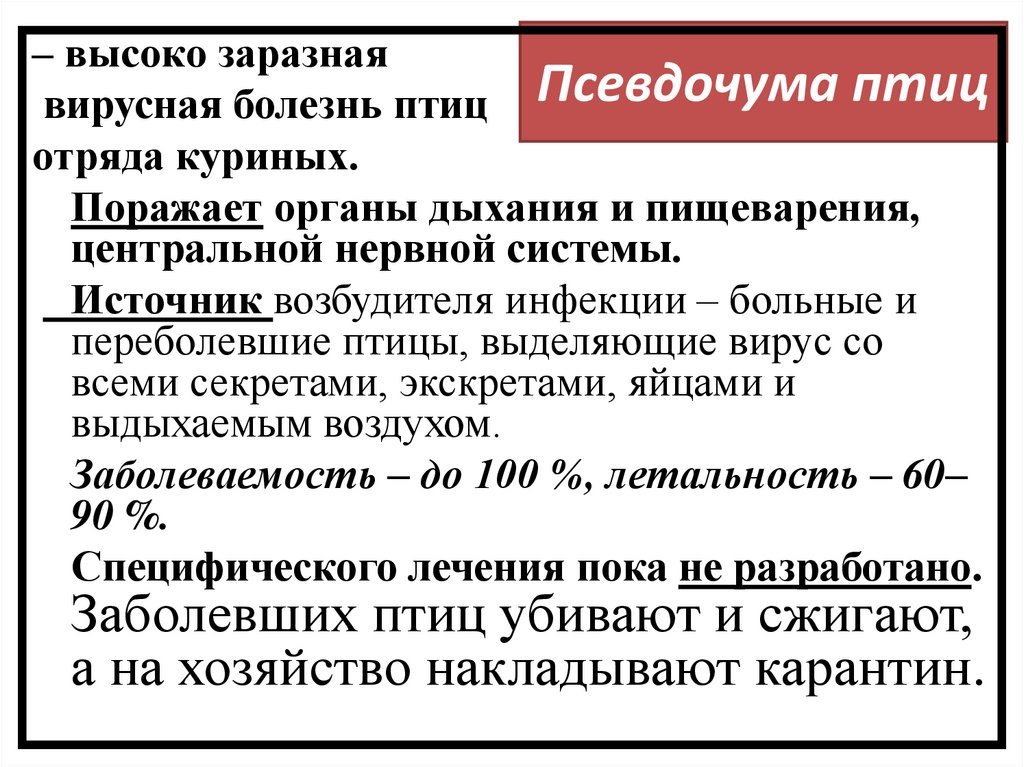 – высоко заразнаявирусная болезнь птиц Псевдочума птиц