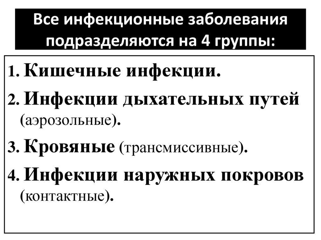 Все инфекционные заболеванияподразделяются на 4 группы: