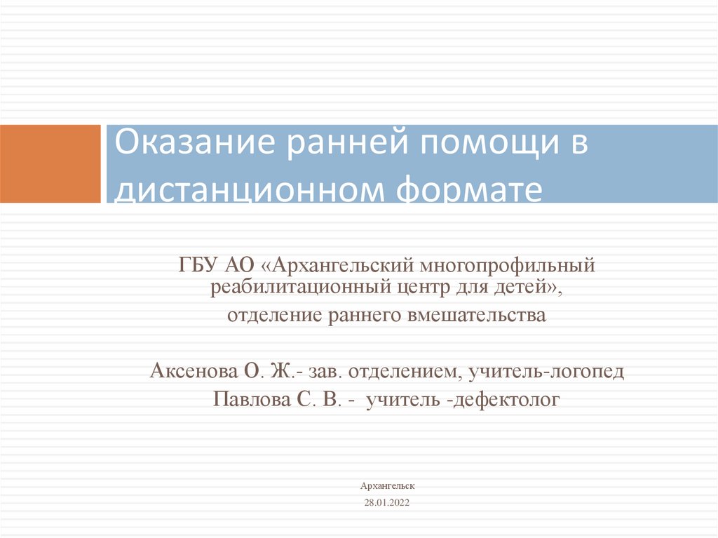 Аксенова О.Ж., Павлова С.В_ ГБУ АО АМРЦ_Доступная ранняя помощь. Включение семей в дистанционный формат работы