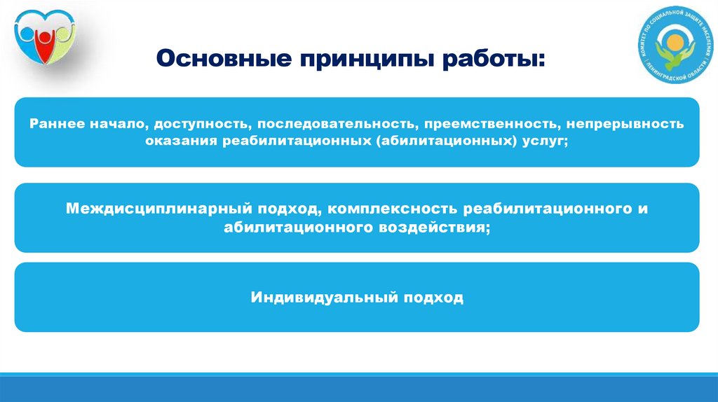 Основные принципы работы:Раннее начало, доступность, последовательность, преемственность, непрерывность