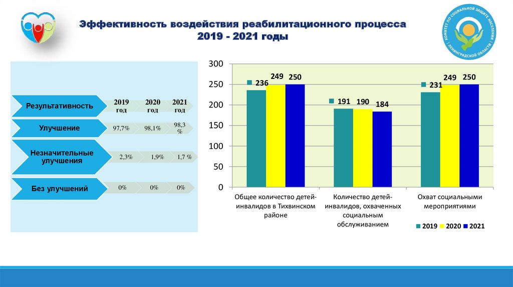 Эффективность воздействия реабилитационного процесса2019 - 2021 годы