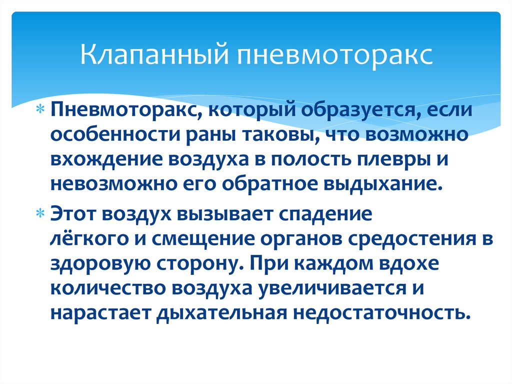 Клапанный пневмотораксПневмоторакс, который образуется, если
