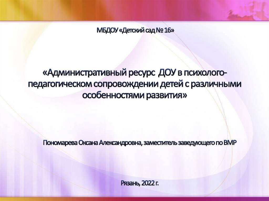 Административный ресурс ДОУ в психолого-педагогическом сопровождении детей с различными особенностями развития