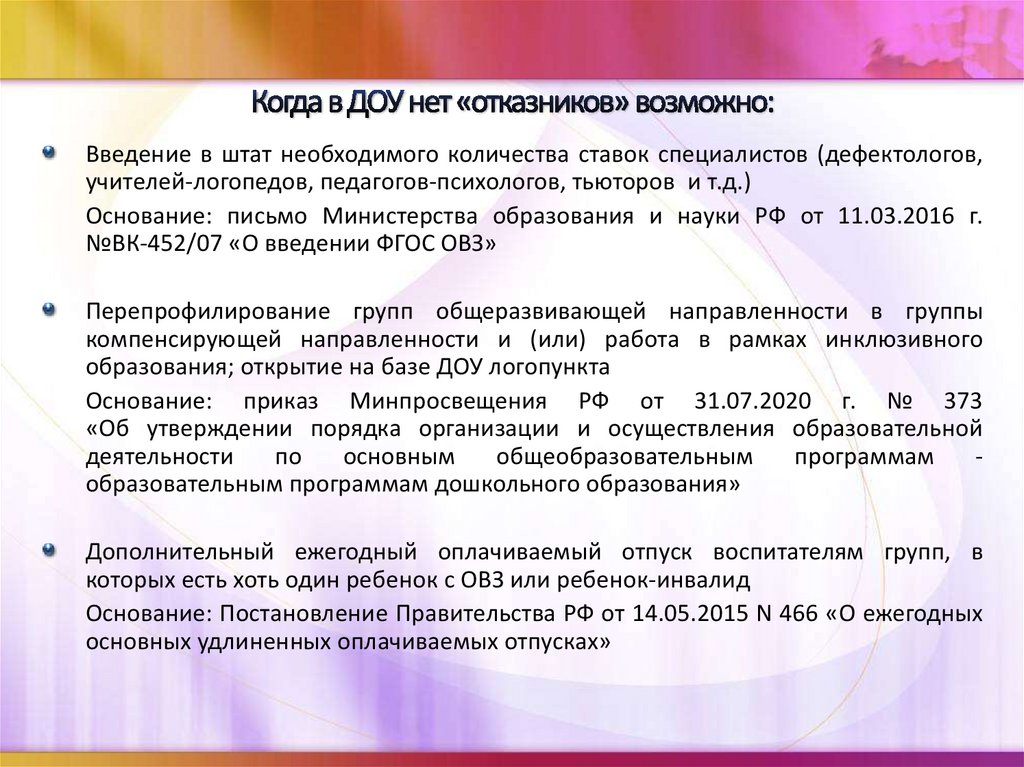 основных удлиненных оплачиваемых отпусках»
