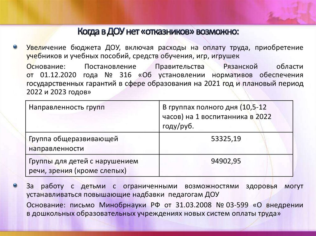 Увеличение бюджета ДОУ, включая расходы на оплату труда, приобретениеучебников и учебных пособий, средств обучения, игр, игрушек