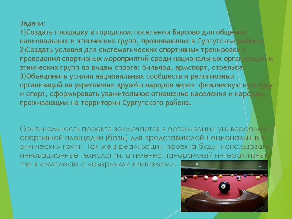 этнических групп по видам спорта: бильярд, армспорт, стрельба;