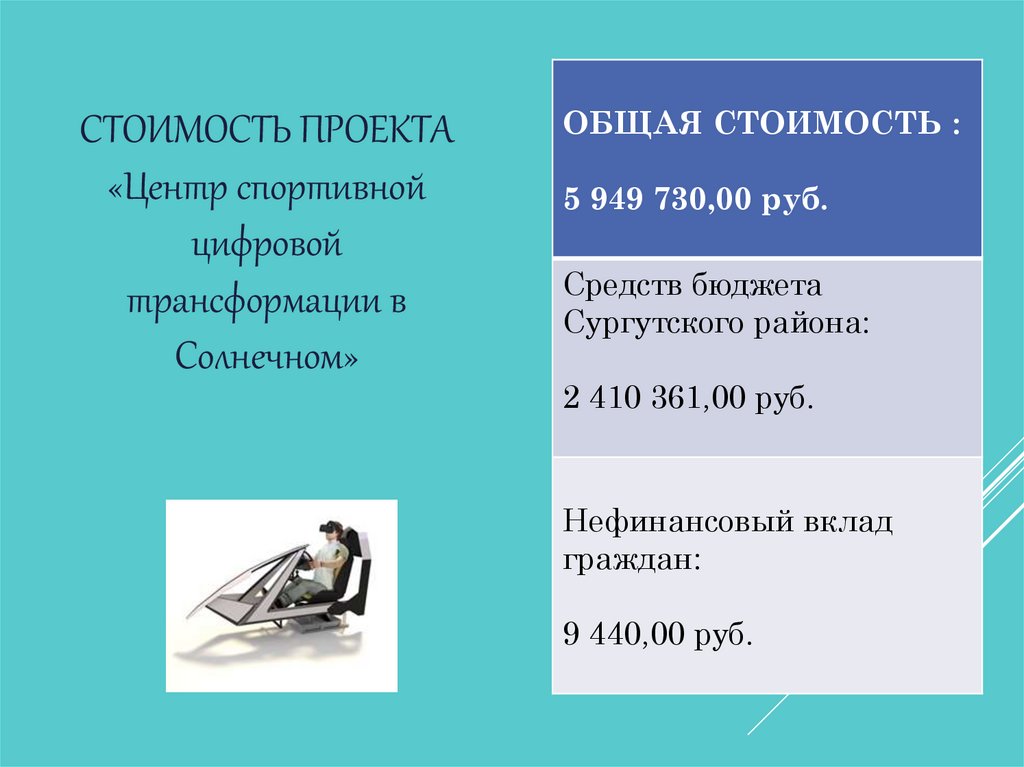 СТОИМОСТЬ ПРОЕКТА«Центр спортивной