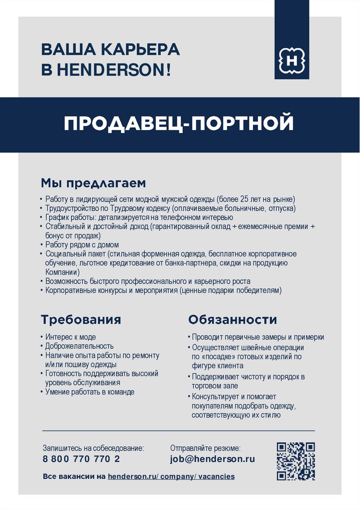 • Социальный пакет (стильная форменная одежда, бесплатное корпоративное