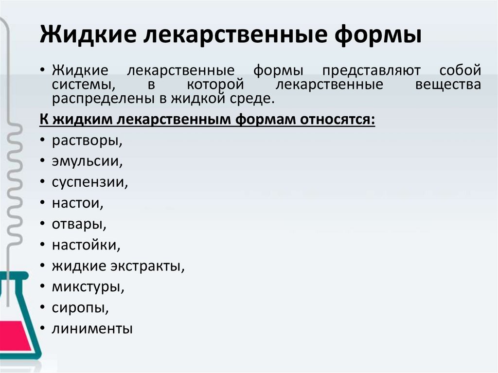 К жидким лекарственным формам относятся: