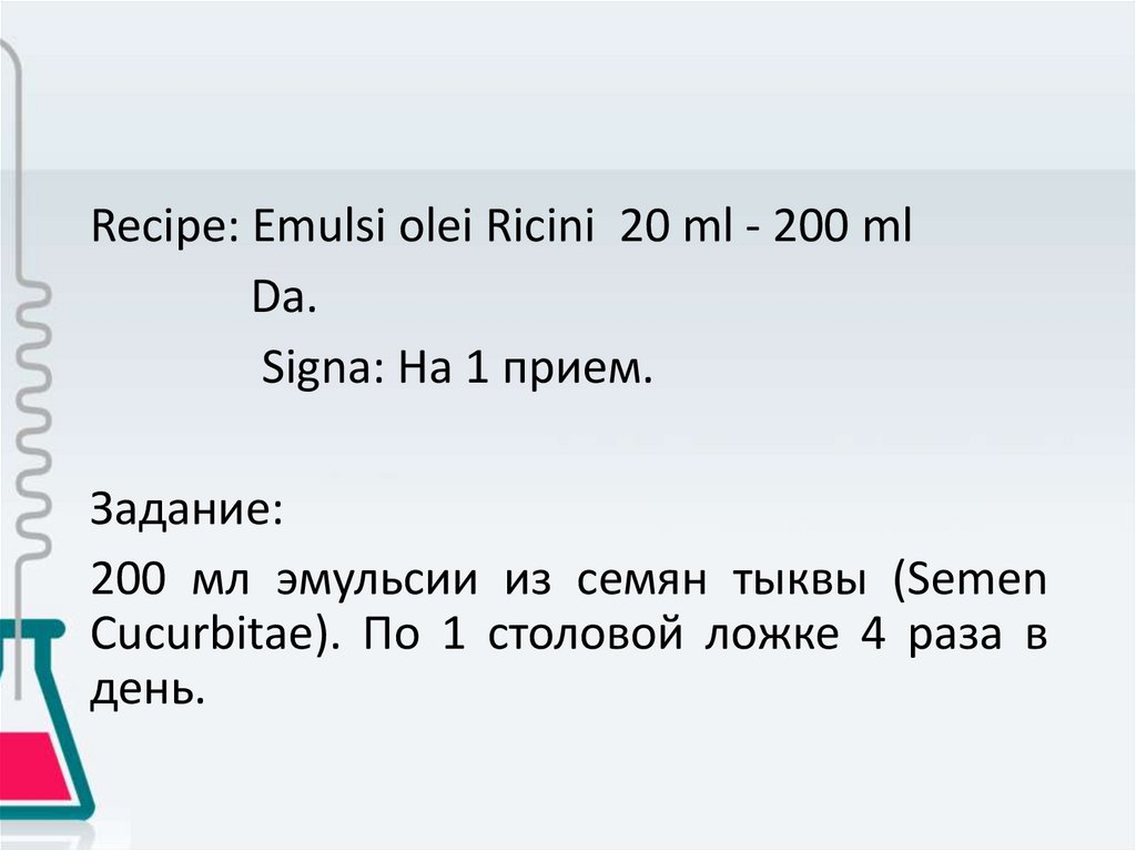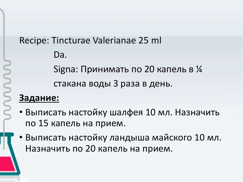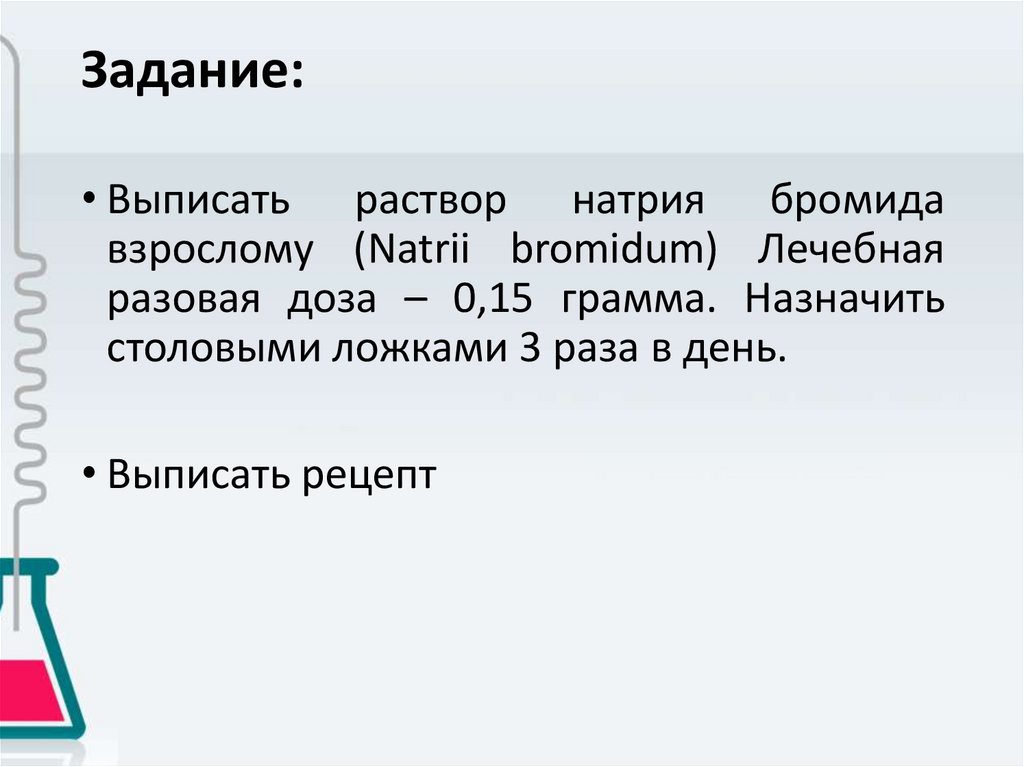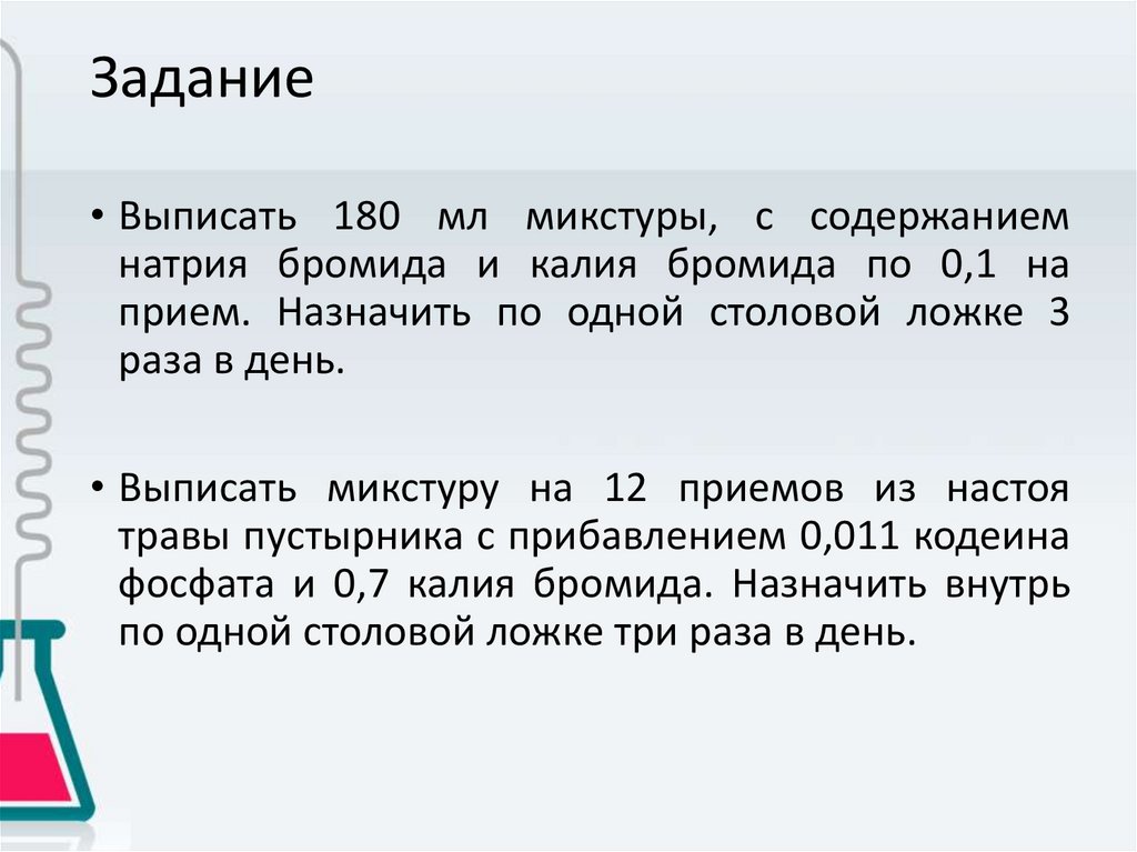 Задание• Выписать 180 мл микстуры, с содержанием