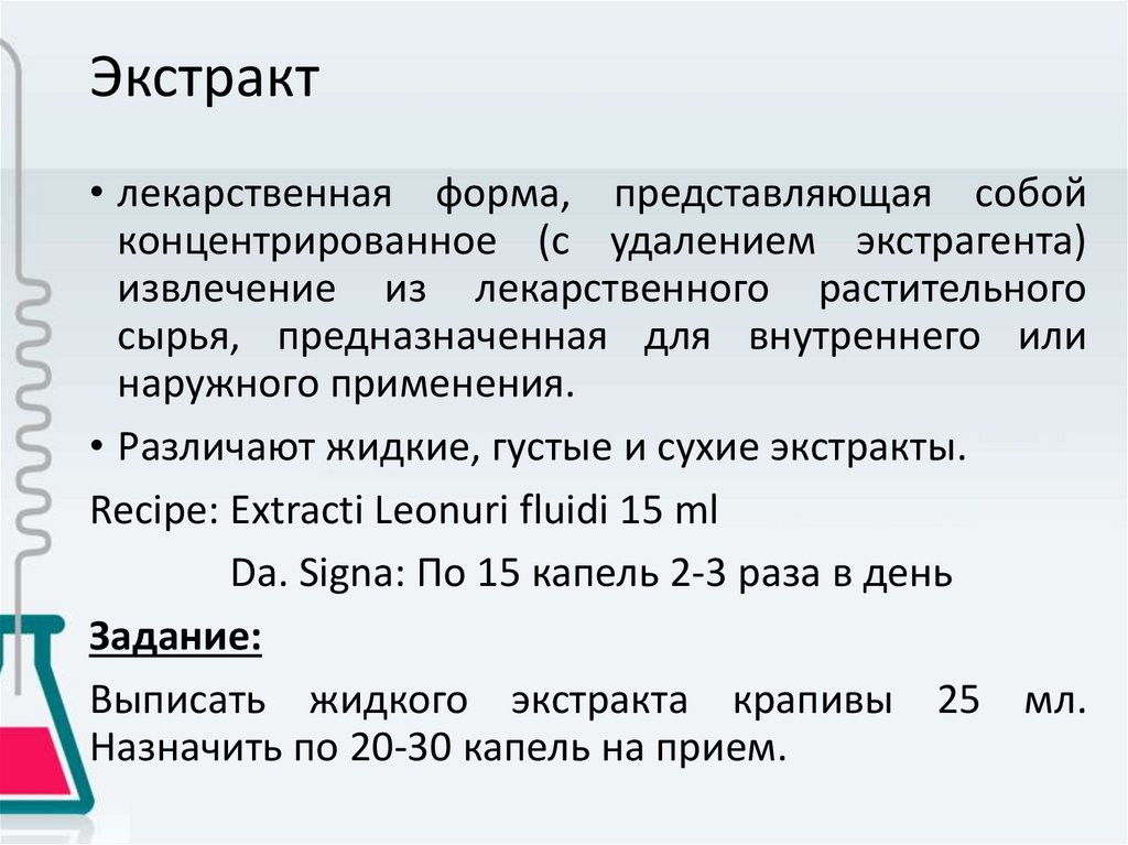 Экстракт• лекарственная форма, представляющая собой