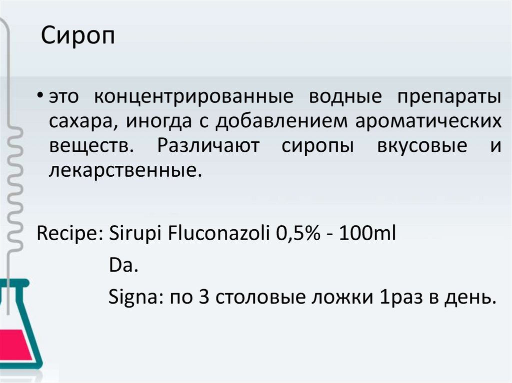 Сироп• это концентрированные водные препараты