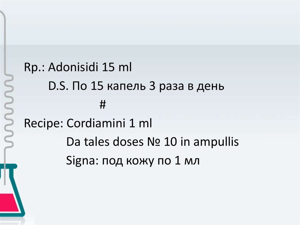 Rp.: Аdonisidi 15 mlD.S. По 15 капель 3 раза в день