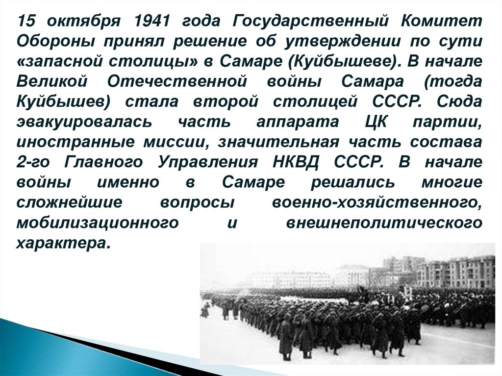 Куйбышев) стала второй столицей СССР. Сюда