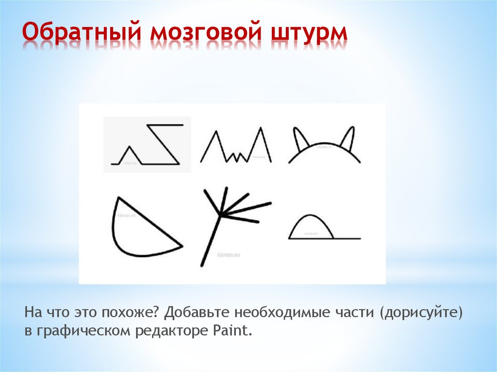 Обратный мозговой штурмНа что это похоже? Добавьте необходимые части (дорисуйте)