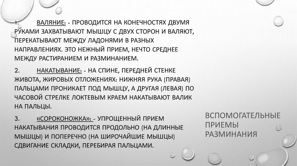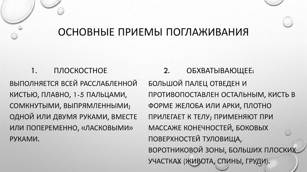 • ОСНОВНЫЕ ПРИЕМЫ КЛАССИЧЕСКОГО МАССАЖА, ИХ