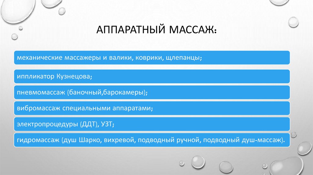 гидромассаж (душ Шарко, вихревой, подводный ручной, подводный душ-массаж).