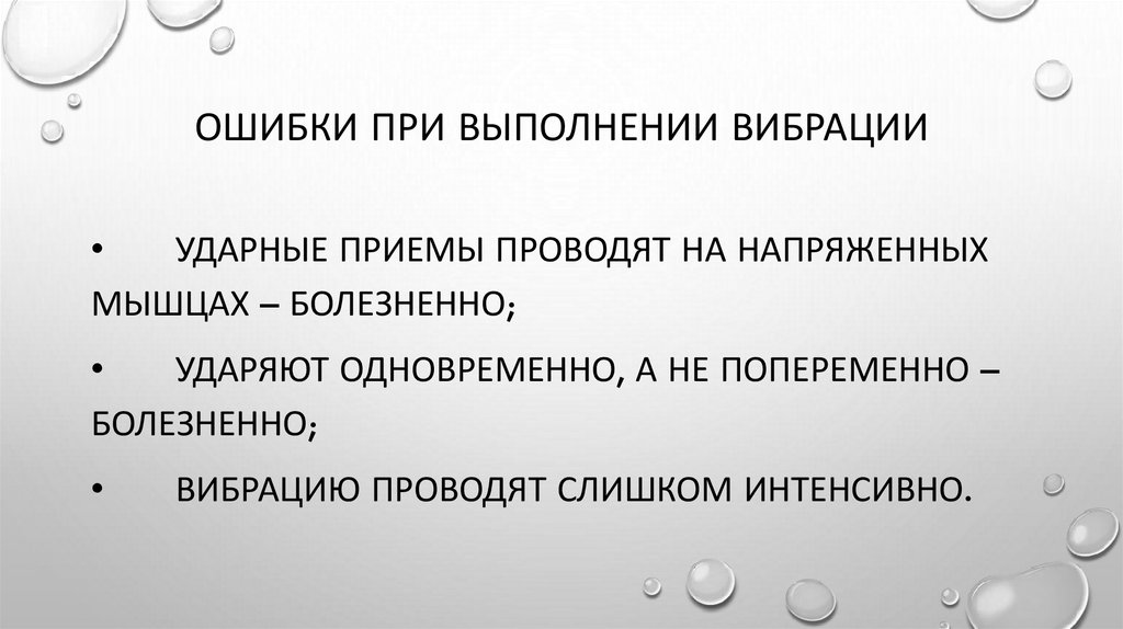 ОШИБКИ ПРИ ВЫПОЛНЕНИИ ВИБРАЦИИУДАРНЫЕ ПРИЕМЫ ПРОВОДЯТ НА НАПРЯЖЕННЫХ