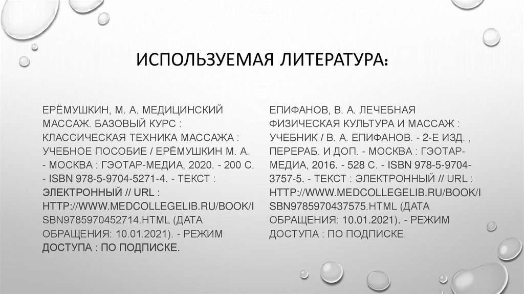 ИСПОЛЬЗУЕМАЯ ЛИТЕРАТУРА:ЕРЁМУШКИН, М. А. МЕДИЦИНСКИЙ