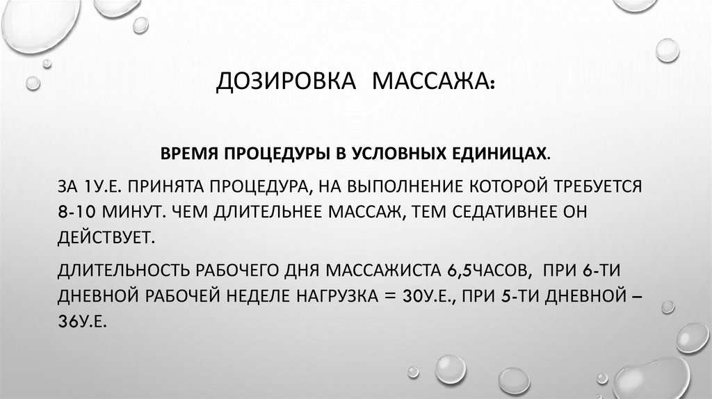 ДОЗИРОВКА МАССАЖА:ВРЕМЯ ПРОЦЕДУРЫ В УСЛОВНЫХ ЕДИНИЦАХ.