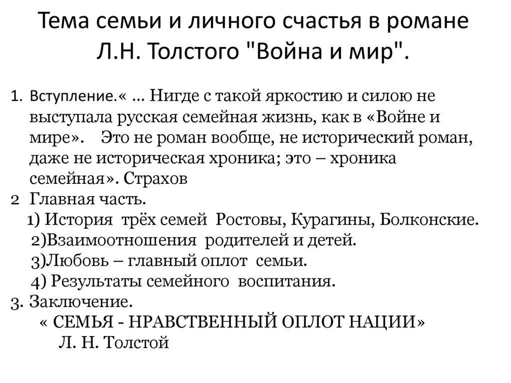 Тема семьи и личного счастья в романеЛ.Н. Толстого "Война и мир".