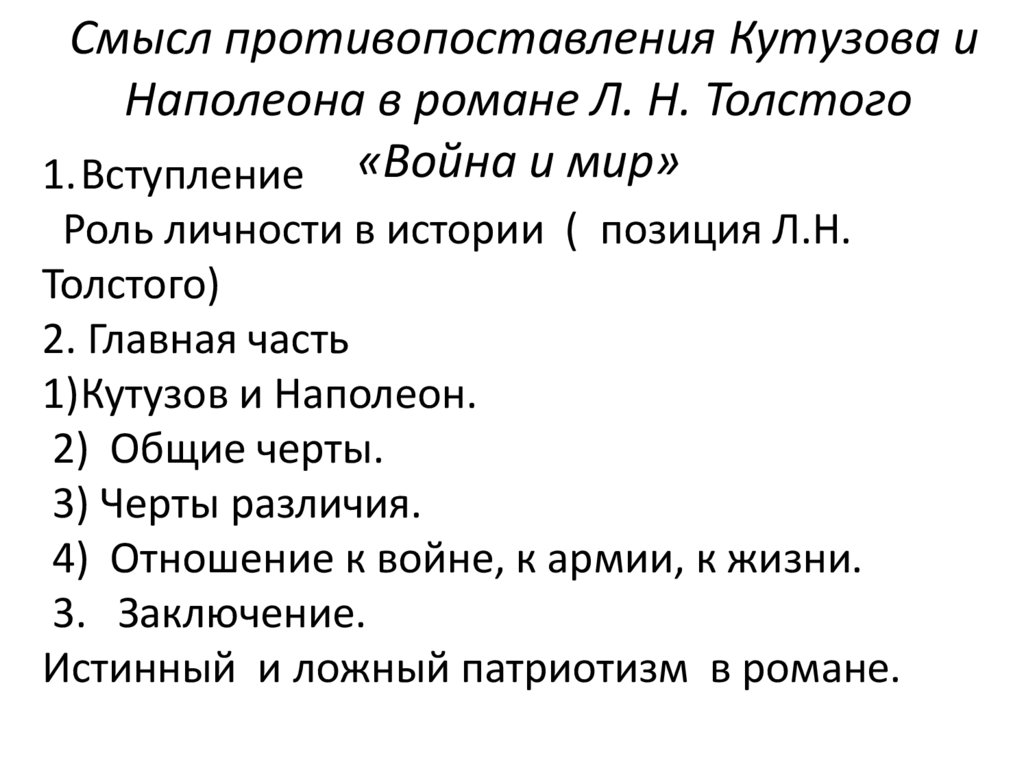 Смысл противопоставления Кутузова иНаполеона в романе Л. Н. Толстого