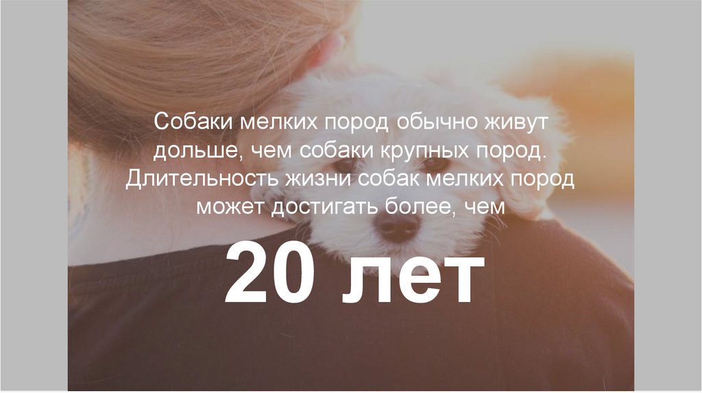 Собаки мелких пород обычно живутдольше, чем собаки крупных пород.