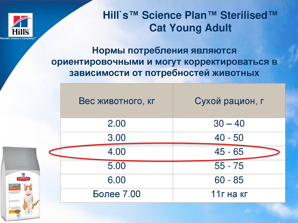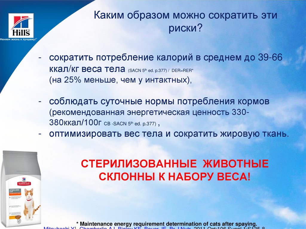 Для стерилизованных кошек суточная потребность в