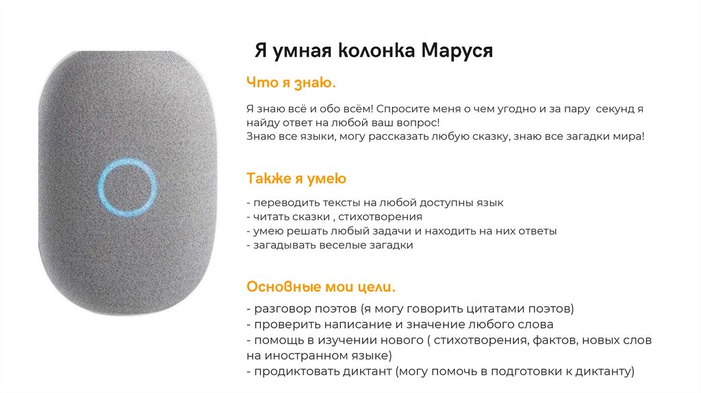 Знаю все языки, могу рассказать любую сказку, знаю все загадки мира!