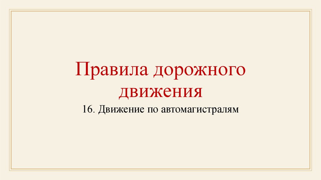 16. Движение по автомагистралям