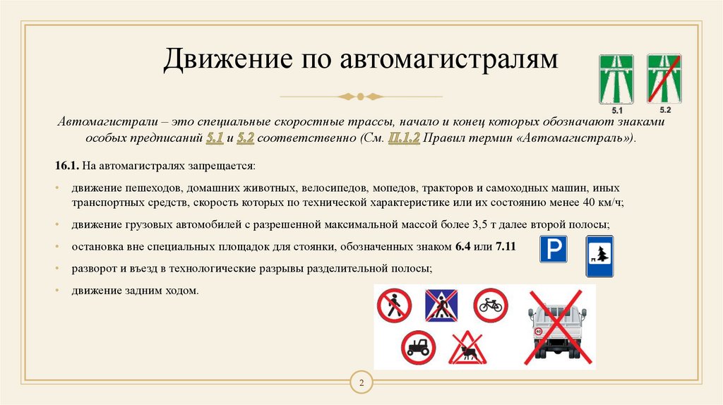 16.1. На автомагистралях запрещается: