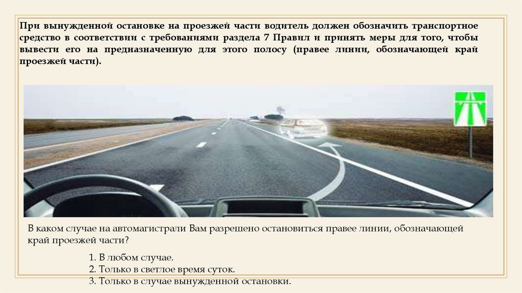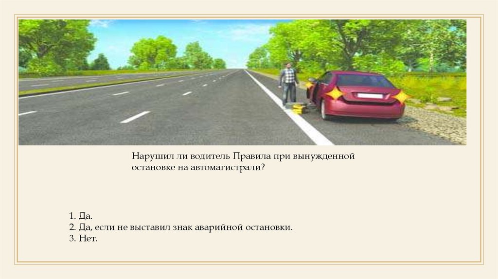 Нарушил ли водитель Правила при вынужденнойостановке на автомагистрали?
