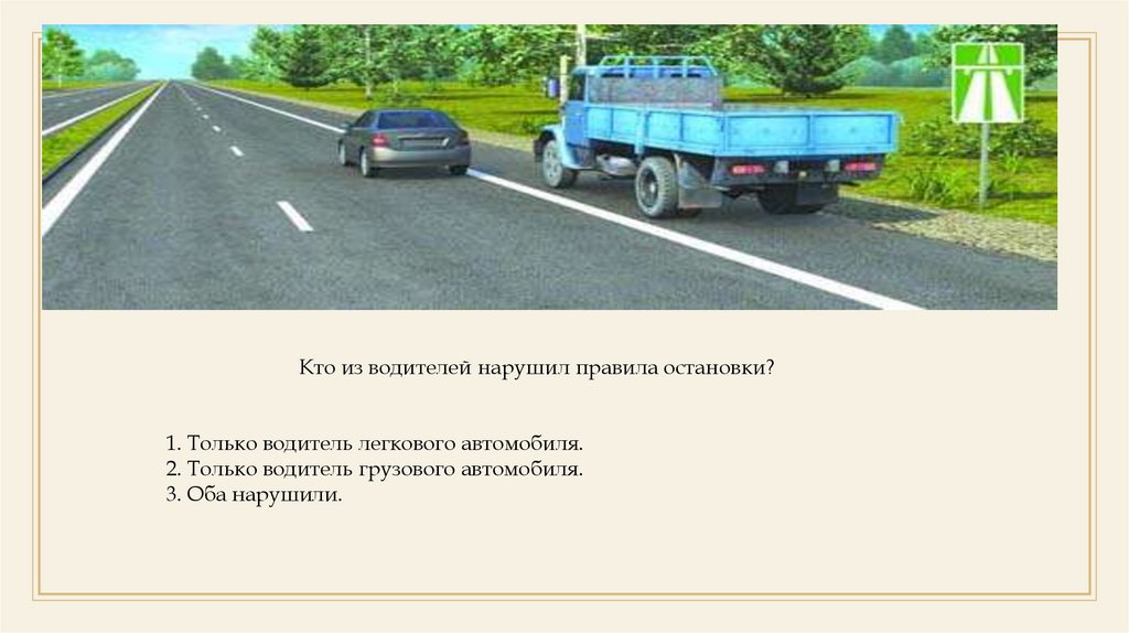 Кто из водителей нарушил правила остановки?1. Только водитель легкового автомобиля.