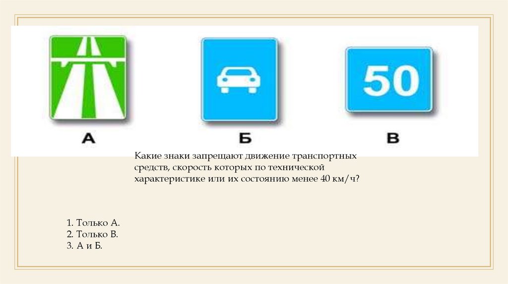 Какие знаки запрещают движение транспортныхсредств, скорость которых по технической
