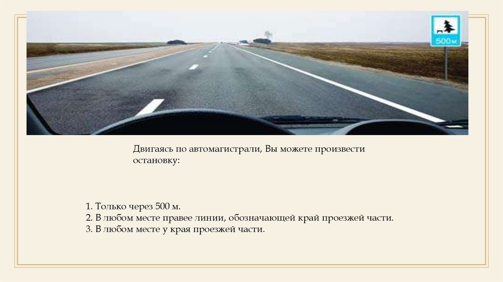 Двигаясь по автомагистрали, Вы можете произвестиостановку: