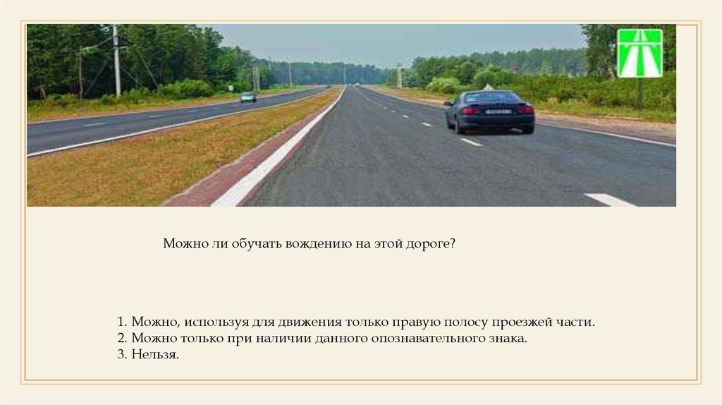Можно ли обучать вождению на этой дороге?1. Можно, используя для движения только правую полосу проезжей части.