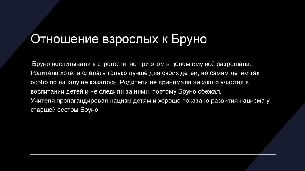 воспитании детей и не следили за ними, поэтому Бруно сбежал.