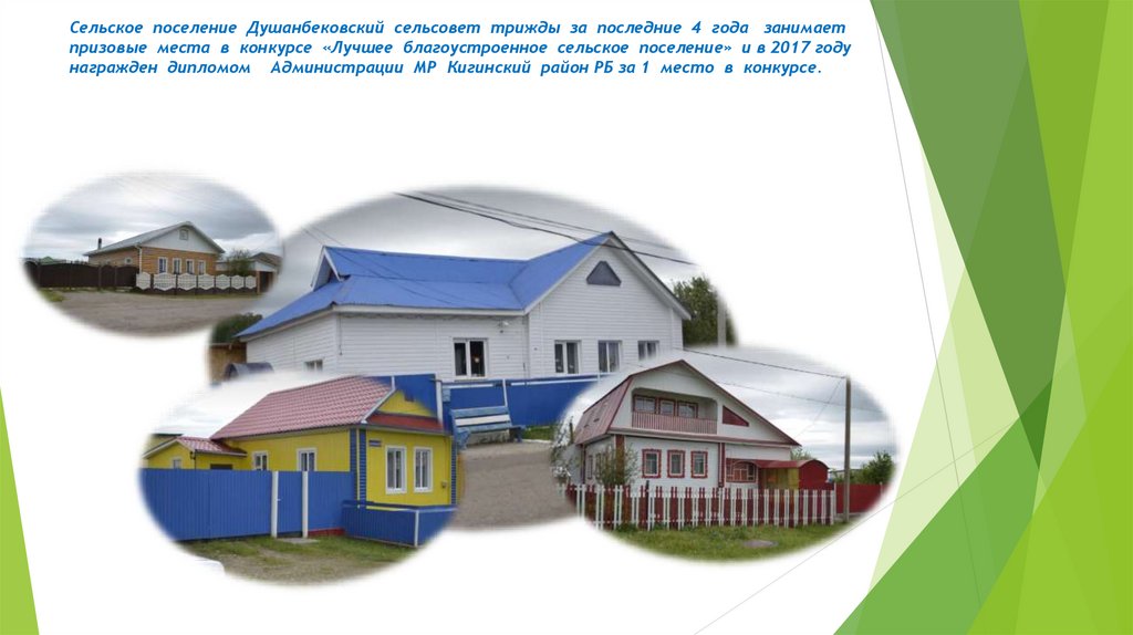 Сельское поселение Душанбековский сельсовет трижды за последние 4 года занимаетпризовые места в конкурсе «Лучшее благоустроенное сельское поселение» и в 2017 году