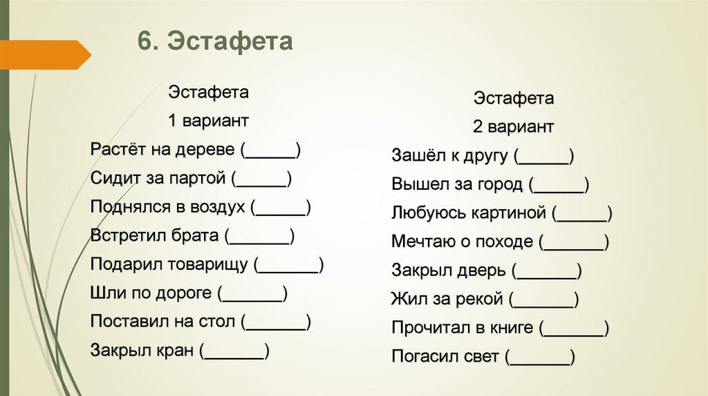 2 команды по 6 человек. На доске в два столбика записаны пословицы