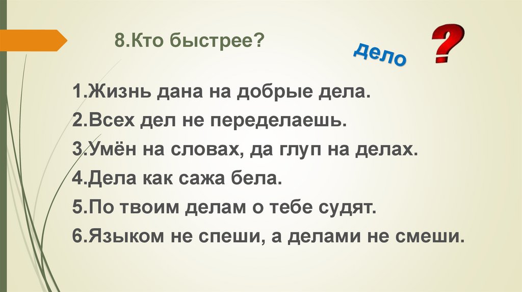 8.Кто быстрее?1.Жизнь дана на добрые дела.